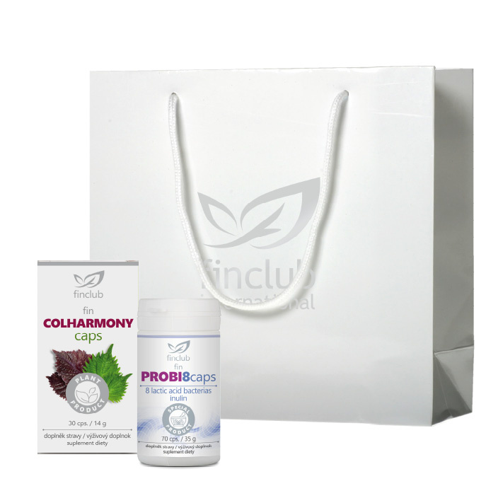 Zestaw jest zapakowany w elegancką białą torebkę papierową.